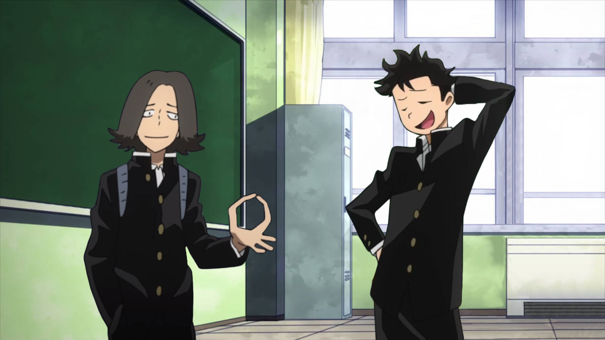 Как оказалось, на него обратили своё внимание, не совсем все ученики. Нашлось маленькое исключение в виде пары парней, которые были целиком поглощены собственным разговором и так уж вышло, что этими людьми оказались никто иные как Ханатаро Юби и Кемури Накано.