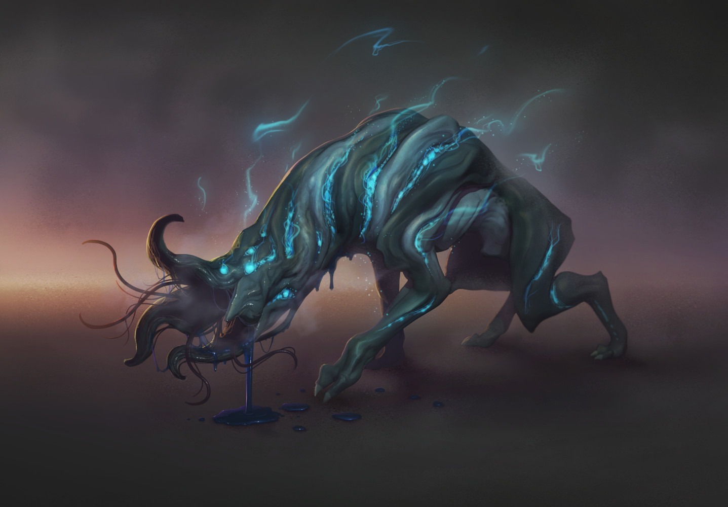 В ходе лекции я узнал, как выглядят и где найти заинтересовавших меня гончих Тиндала. Уж не знаю, кто дал им такое название, ведь их тело лишь отдалено было похоже на собачье, если не учитывать темно-зеленую шкуру с ярко-синими прожилками, через которые сочится голубоватый туман, вместо головы у них было пять коротких щупалец-лепестков, скрывающих за собой длинные щупальца-языки, способные различать запах и ауру даже сквозь миры.