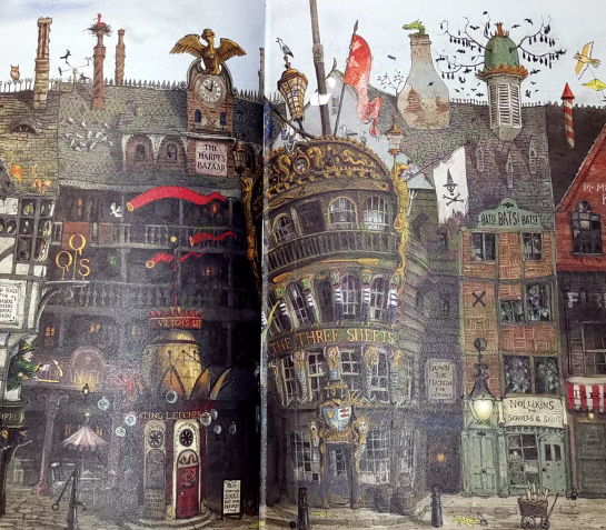 «Три гоблина и кентавр» больше походил на небольшой паб, чем на трактир. Он располагался в помещении, сложенном из старого камня, с дубовой дверью и кованой вывеской с названием рядом с ней. Их подсвечивал в вечерней темноте старинный фонарь. Посетители внутри паба располагались на деревянных скамьях за такими же столами. Не было никакого электричества: всё освещалось свечами и магическими светильниками. На стенах висело несколько картин, со сценами из истории Магической Британии, а также полок, уставленных старой фарфоровой посудой. За барной стойкой стоял улыбчивый бармен, предлагая гостям различные виды эля, другие популярных напитков, а также блюд из богатого меню.