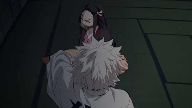 Лишь тогда, когда девочка-демон демонстративно отвернулась от капающей на пол крови, всем просто-напросто пришлось принять тот факт, что сестра Танджиро была несколько необычным ночным монстром…