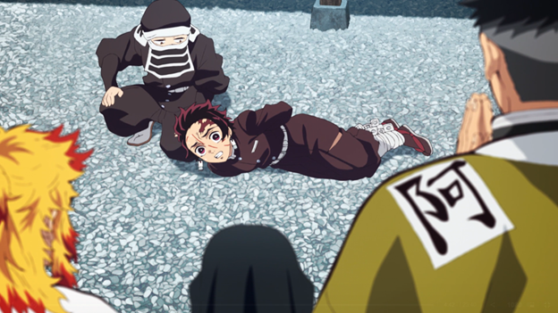 Танджиро, который кстати почти не изменился внешне с нашей последней встречи, не считая пары царапин на лице чуть более взрослого лица, лежал на земле, со связанными за спиной руками и кажется пытался что-то объяснить стоящим перед ним Столпам, которые были тут практически в полном составе. Подойдя ближе, я с лёгкостью расслышал его громкие крики: