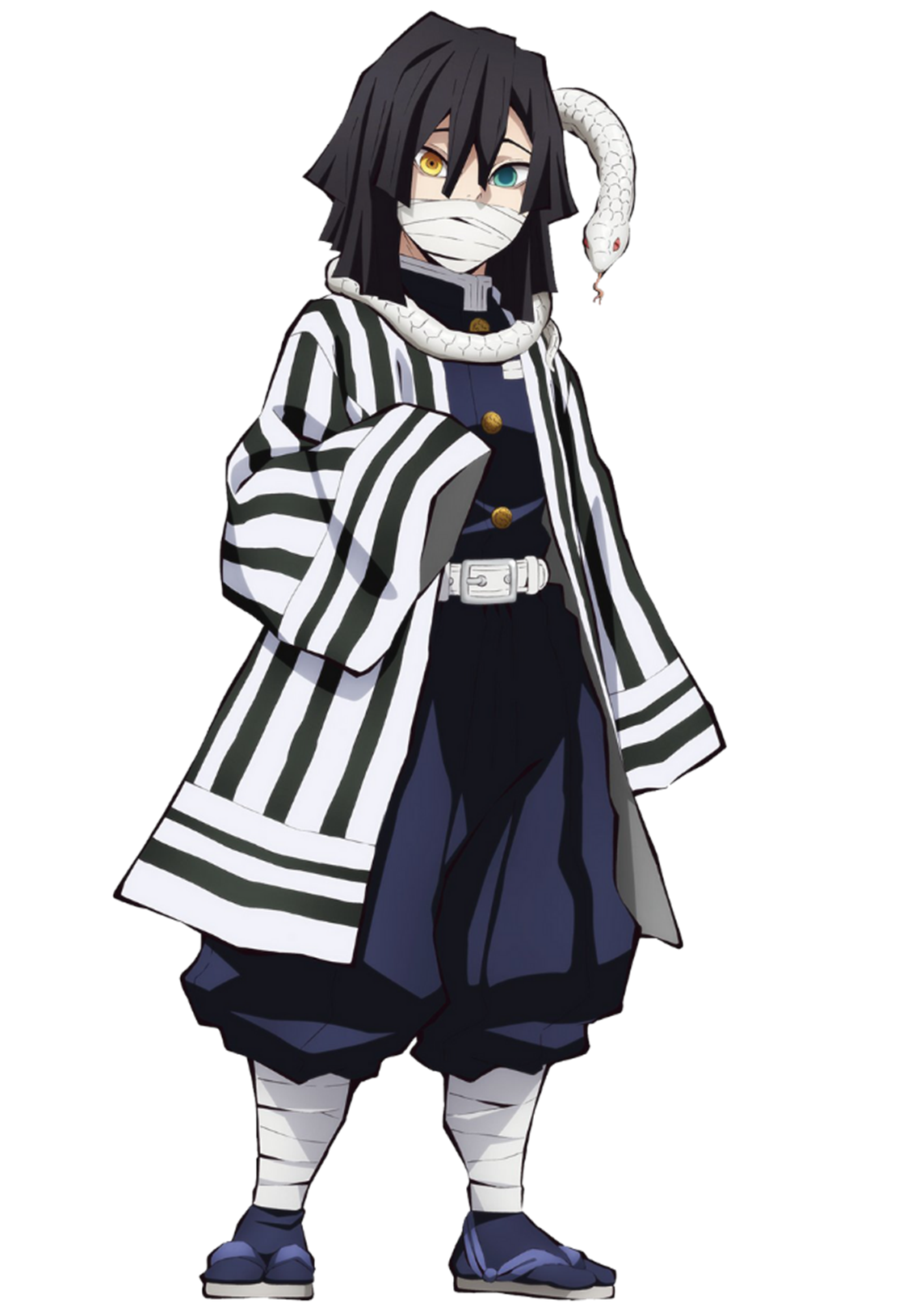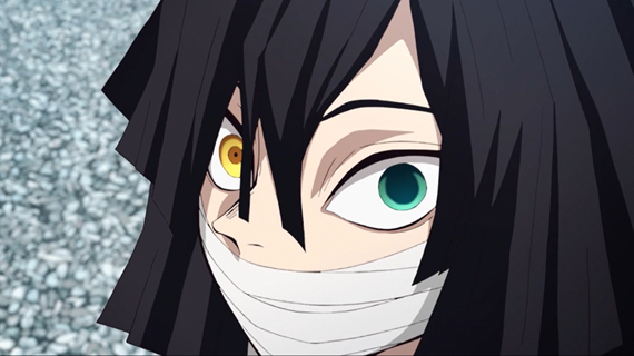 Он был одет в стандартную форму охотника на демонов и носил на лице своеобразную маску из бинтов, которая прикрывала нижнюю половину его лица. А ещё…