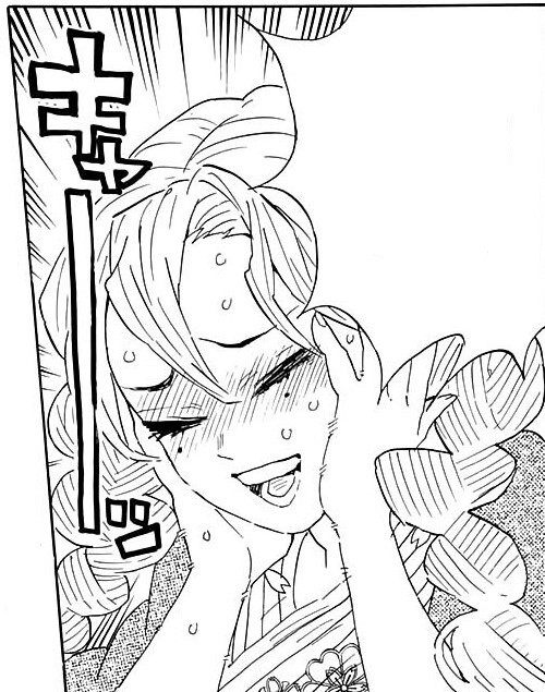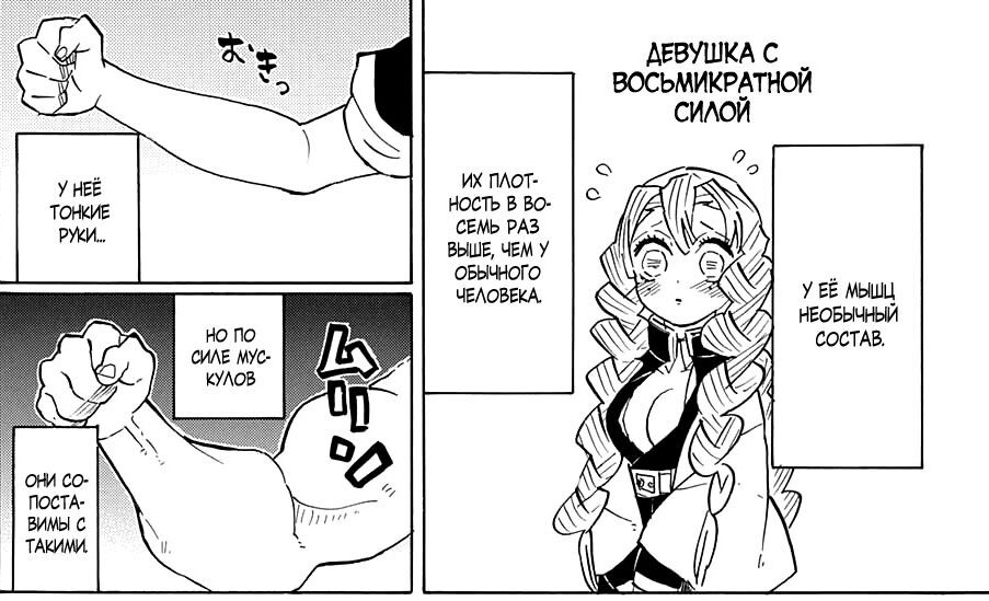Например, как выяснилось, Мицури Канроджи родилась в довольно богатой и влиятельной столичной семье, с пятью братьями и сестрами. Уже в раннем возрасте в ней, помимо необычного (я всё ещё не могу понять почему) цвета волос, была обнаружена и необычайная, как для ребёнка, физическая сила. Несмотря на то, что видимой мускулатуры у девочки не было, в армрестлинге она не отставала не только от мальчиков братьев, но и зачастую могла посоперничать даже со взрослыми.