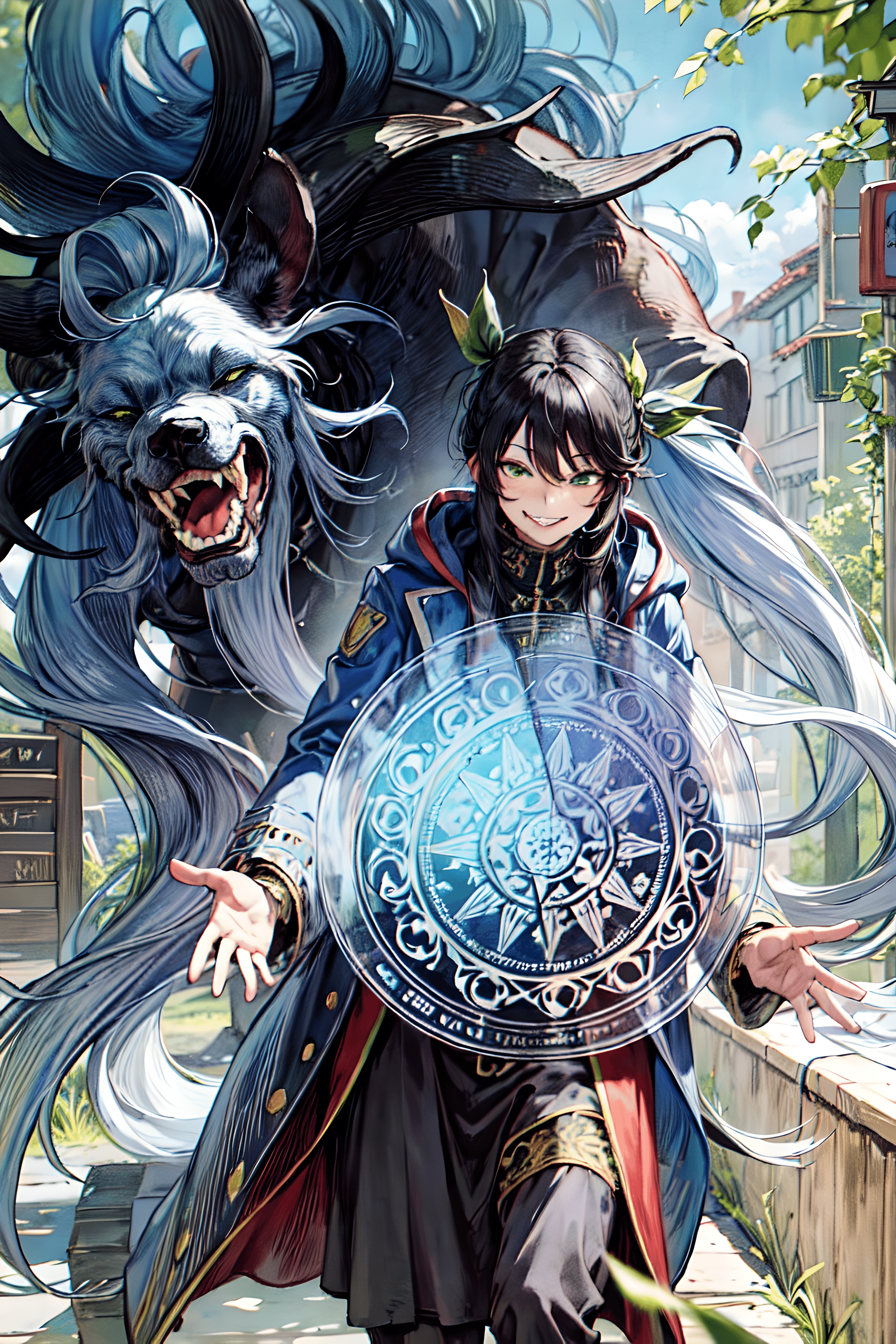 А дальше, я решил пойти по стопам автора "Восхождение в тени" и довёл уровень кринжа до максимума, позволив нейросети десять раз улучшить изображение без тегов и контроля. Прошу любить и жаловать — Алиса. Будет наводить жуть на идиотов в районе урала. Использует в основном духов с природной направленностью, саркастична, насмешлива и примерно настолько же адекватна как ГГ… Не очень — в общем.