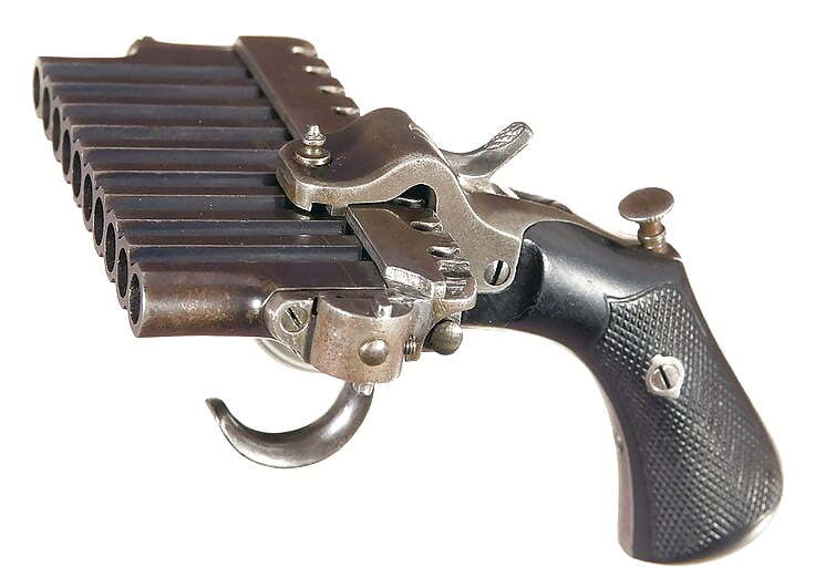 До сих пор с содроганием вспоминаю сумрачные творения средних веков, типа "десятизарядный пистоль"… Какой умник вообще додумался до того, что прикрутить пистолетную рукоятку к "Панфлейте" — это крутая идея?! Как вообще должна бродить мысль в закоулках разума, чтобы придумать такое?! Но ведь придумали же, о чём я и намекал мушкетёршам, периодически высказывая подленькие фразы, типа: "Сокрытый простейшей иллюзией маг, с лёгкостью преодолел личную охрану и убил дочь Герцога, после чего, с лёгкостью прорвал оцепление неумелых горе-защитников, и злорадно хохоча, скрылся в ночи». (Пистолет "Гармоника". Увидел — Охренел!)