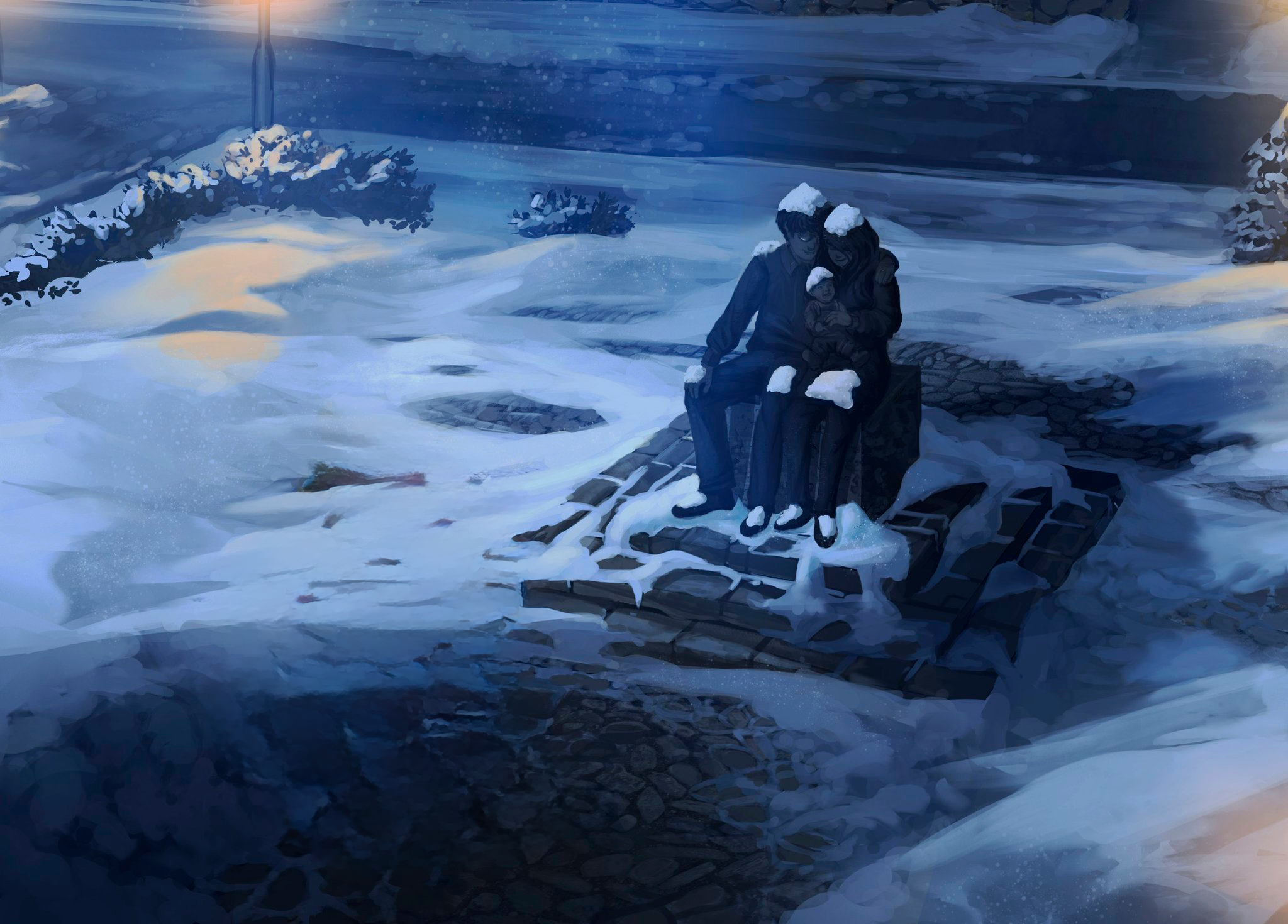 Отойдя от Гарри, Ванда приблизилась к памятнику посреди площади. Это были каменные изваяния молодой пары — парня и девушки, на руках у которой находился счастливый младенец. Сердце пропустило удар, когда Ванда увидела эти улыбки. Каменные лица и эти поразительно живые улыбки казались чем-то неестественно притягательным и трогательным.