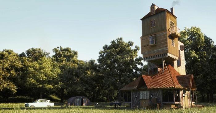 Однако на месте большой поляне был какой-то… Домом назвать его язык не повернулся. Свинарник с косыми этажами и стенами, которые лепил какой-то пьяный строитель. На красной черепичной крыше торчали вразнобой пять каминных труб. У входа на шесте, слегка скособочившись, висела надпись: «Нора». Подлатанный забор, за которым никого не было.