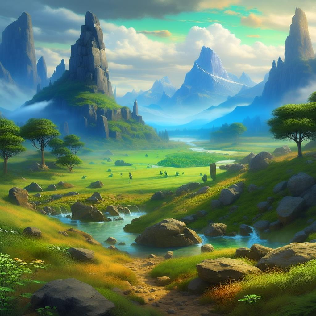 Пока она старалась держать в голове мысль о том, что приближающаяся земля лишь иллюзия, они наконец приземлились на неё, и оказались посреди зелёного поля, в мире, полным длинных скалистых образований в виде столбов или когтей. Вдалеке же располагалась огромная гора в виде игральной кости d20.