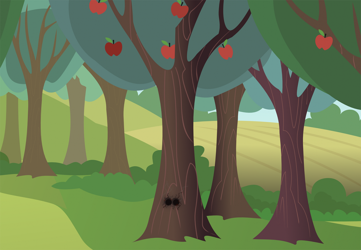 Подойдя к партии яблонь, Эпплджек расположила два ведра под деревом, и повернувшись к Алану, сказала: