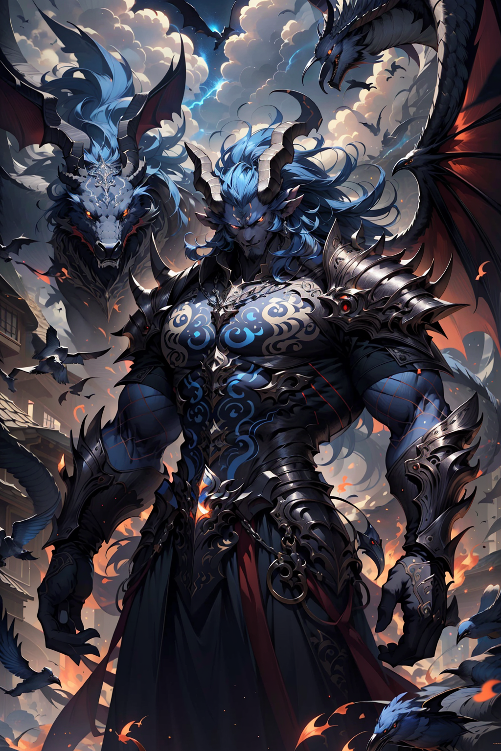 Выглядел он как демон c рогами, стильными синими волосами и кожей, его рост был в районе 2 метров с фигурой Шварценеггера.