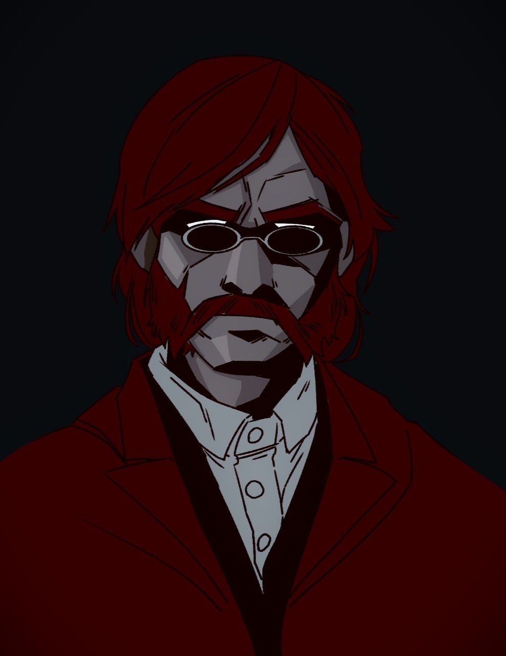 Внутрь зашёл мужчина лет 40, на нём было одето пальто, сам он на голове носил очки, на голове у него была шляпа, а лицо украшали бакенбарды, в кобуре был револьвер, весь его образ напоминал ковбоя.