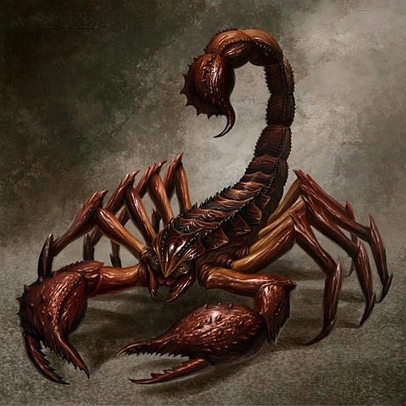Громадное черное туловище, многочисленные красные конечности, горящие огнём клешни, длинный хвост c угрожающим наконечником.