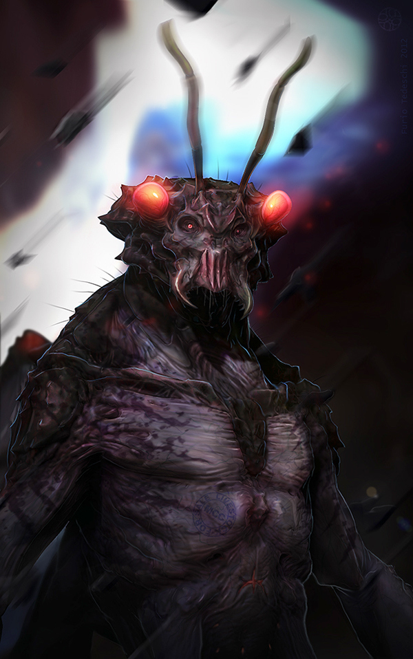 — Эти ублюдки как слизняки, люди просто отвратительны, даже после того как мы их всех поймали, девке с которой мы хотели повеселиться удалось сбежать, что ещё хуже, только мы в четвертом отправились на её поиски и уже одного из нас она убила. — Сыпал проклятьями человекоподобный инсектонойд с двумя парами глаз, который отыгрывал мамкиного разбойника.