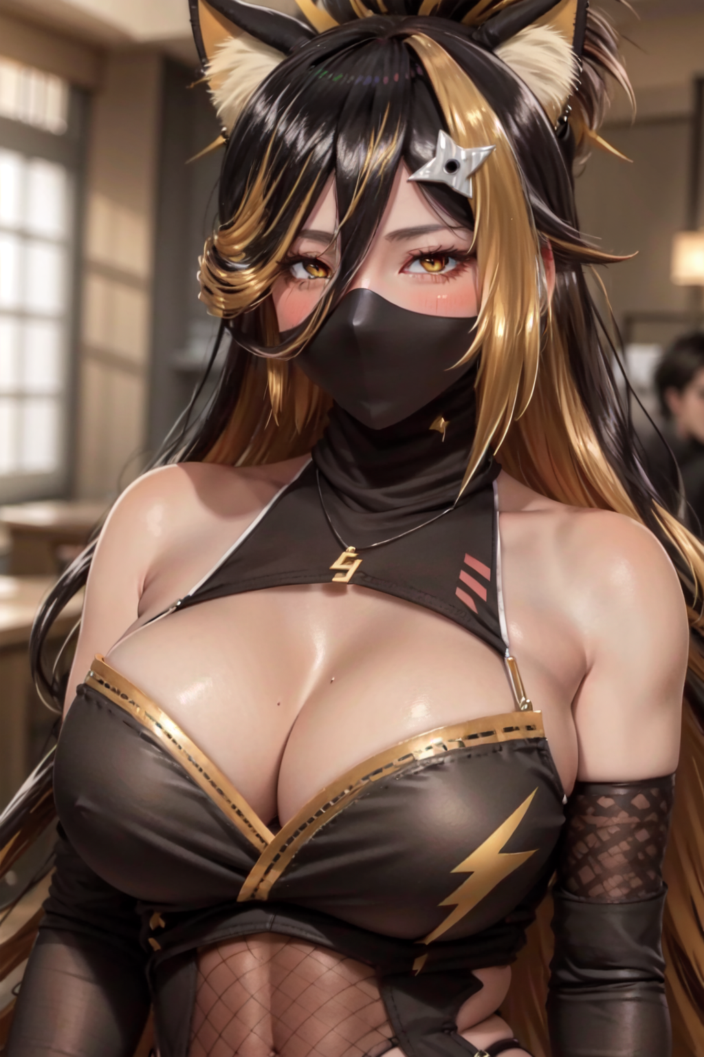 Отыгрывал Куница зверолюда, это те, которые с ушками и хвостиком. Покрасил он её черные волосы в золотистый цвет, а на голову вообще сюрикен прицепил в виде заколки.