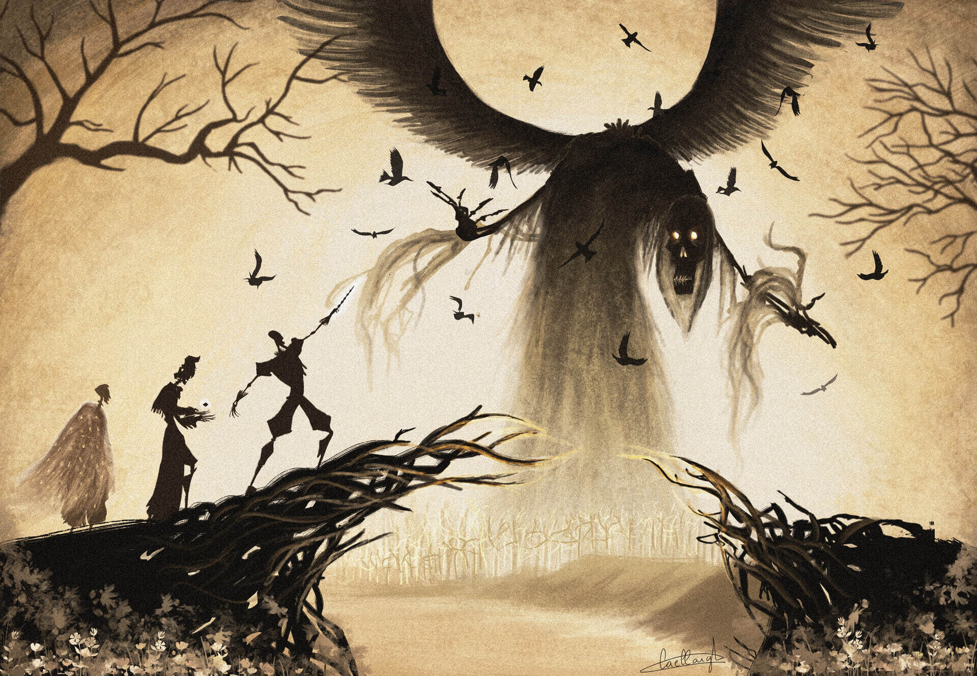Достав палочку, Гарри постучал несколько раз по двери, на которой был выкован какой-то замысловатый узор. Стук, усиленный магией, разнесся, кажется, по всему участку и наверняка оповестил тех, кто находился внутри дома. Конечно, если там еще кто-то остался.