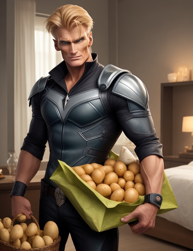 Опасаясь обнаружить на кухне футбольную команду чернокожих юношей их Южных царств, он с осторожностью ступил на территорию кухни. А там всё внешне было нормально. Синтезатор, замаскированный под стол с кастрюлей, находился на месте. Андроид тоже нашёлся — он тащил из кладовки мешок с продуктами.