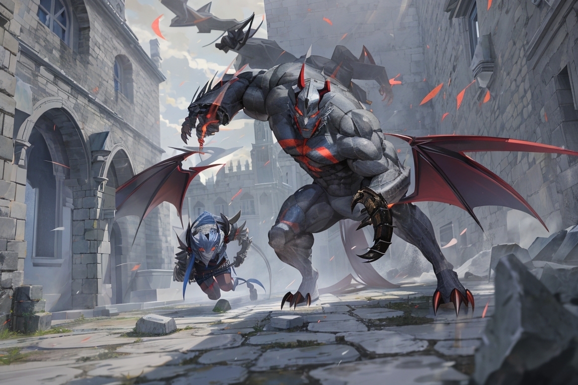Землянин не собирался отпускать охотника, который позарился на его шкуру. Он побежал следом за демоном. Поскольку в скорости он ему не уступал, но и не превосходил, то получалась патовая ситуация. Демон бежал к забору, Жан-Поль следом за ним, но догнать не мог. Всё изменилось, когда серокожий прыгнул на стену. В этот момент француз настиг его и ударами мечей крест-накрест разрубил на четвертинки.