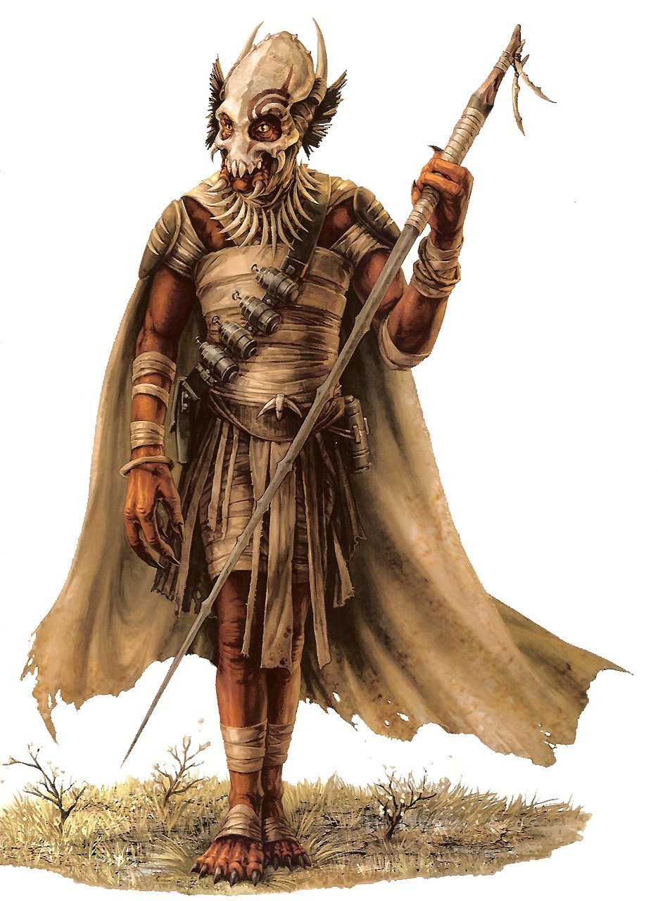 По описаниям, ям’рии мне совсем не понравились. Один в один богомолы, только увеличенные до трёх метров. Крайне агрессивные и мало того, не гнушаются каннибализма. То есть эти насекомые жрут всех подряд, точь-в-точь как коликоиды, что не делает их хоть как-то симпатичными в глазах остальных разумных. С ям’рии удалось договориться только Торговой Федерации, которая поставляет им технику, вооружение и различное оборудование, что и позволило этой расе начать экспансию. С ям’рии есть что взять, потому как Хак довольно богат на полезные ископаемые. А вот с калишцев взять нечего — их планеты в этом плане бедны. Зато что взять с калишцев, сообразили насекомые… Видимо калишцы на их взгляд слишком вкусные, и как здесь в датападе у меня написано, ям’рии и работорговлей не брезгуют. Вот просто совсем-совсем нехорошие ребятки и кругом неправыми смотрятся. Дихлофоса на них нет!
