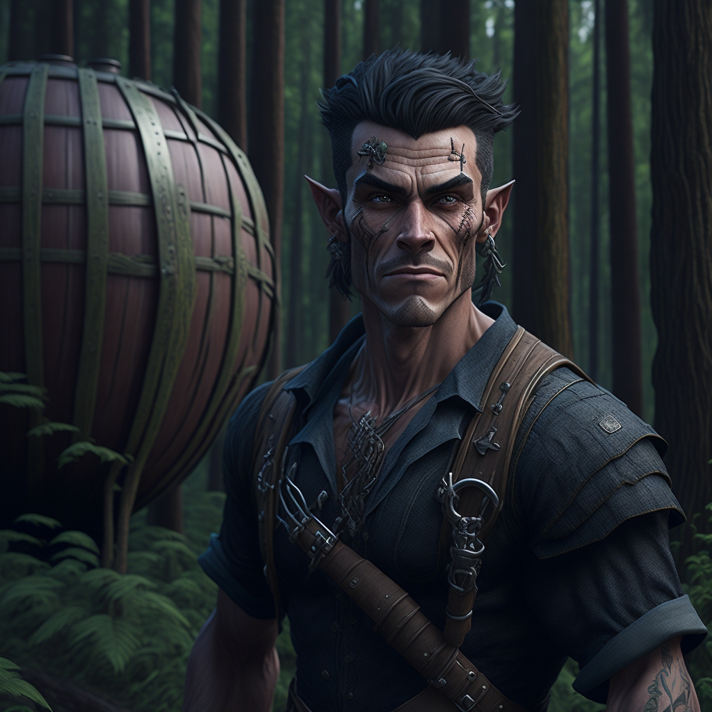 Он поспешно облачился и спустился на первый этаж. Столь ранним утром зал таверны пустовал. За ближним к входу столом сидел бомжеватого вида эльф, вся фактура которого вопила о том, что он не любитель выпить, а профессионал в этом деле. Худой и жилистый, в потрёпанной тунике и брюках, которые когда-то были зелёными, а нынче превратились в нечто залатанное болотно-серого цвета. Сапоги не развалились лишь благодаря чуду и множеству ниток с заплатками. Его жидкие соломенные волосы были всклокочены, вокруг зелёных глаз образовались припухлости.