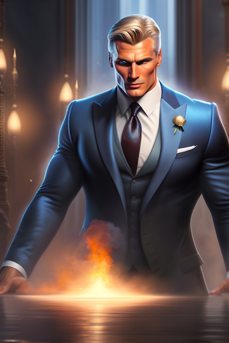 Дорогой солидный тёмно-синий костюм сидел на нём как влитой и был дополнен белоснежной рубашкой с чёрным галстуком. Лакированные туфли блестели в свете лампочек. Весь его вид излучал уверенность в себе и харизму.