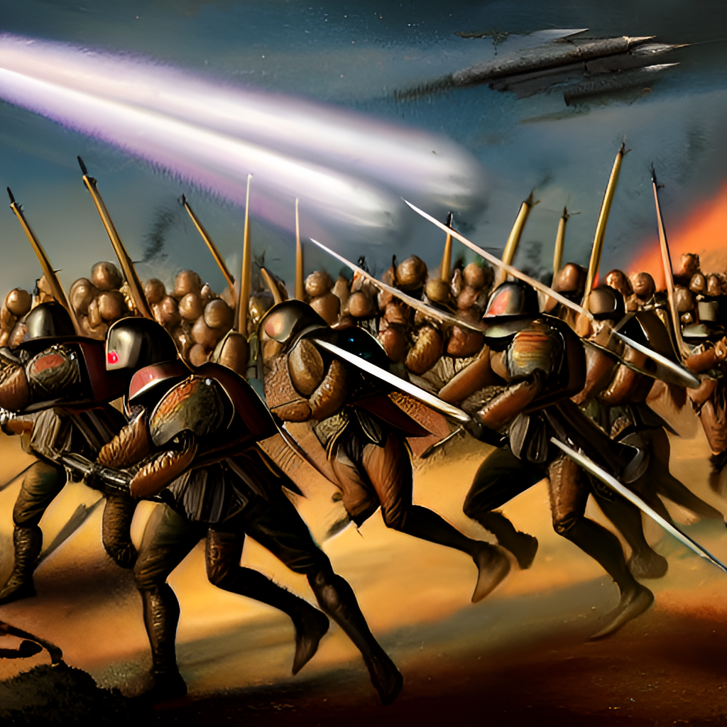 В это время пять андроидов со скоростью гепарда рванули вперёд в атаку. Кисти рук у них откинулись вверх, а из предплечий выдвинулись маленькие дула. С правых рук каждый из них посылал во вражеских солдат короткие бластерные импульсы, которые почти всегда попадали в цель. С левых рук они выпускали мощные электрические разряды из тазеров — миниатюрные молнии, летящие по ионизированным воздушным каналам.
