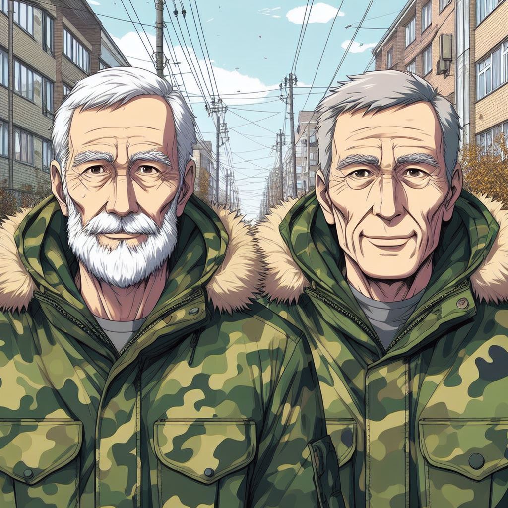 В следующее мгновение приложение развернулось на весь экран и на него вывелось изображение с камеры видеонаблюдения. Изображение увеличилось, но стало напоминать кубики, которые вскоре сгладились. В итоге экран продемонстрировал двух пожилых мужчин в старых потрёпанных камуфляжных костюмах.