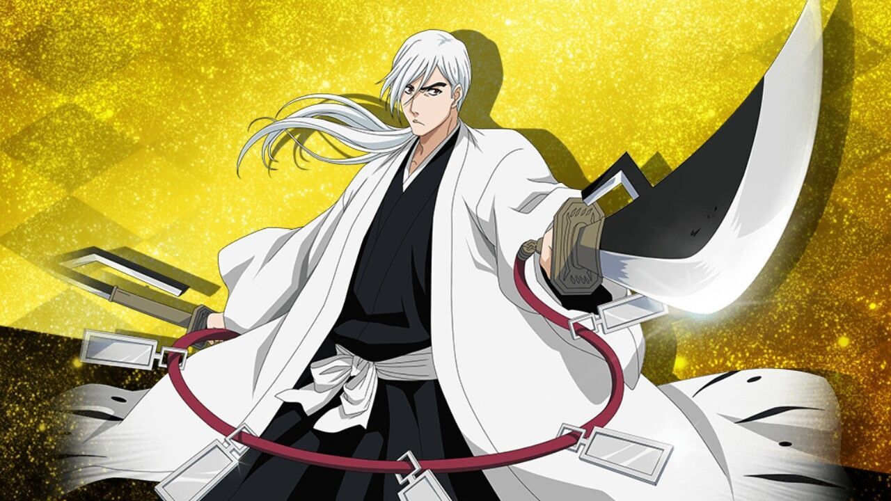 Один из них — высокий мужчина с бледным лицом, но нежным выражением и тихой улыбкой. Длинные пряди прямых белых волос легко выдали его личность — Укитаке Джуширо.