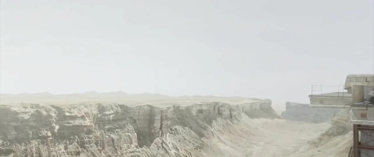 Русло реки, хотя это больше походит на каньон, но в фильме было сказано, что по дну текла раньше река. Это всё ещё возможно, просто если она текла на самом дне.
