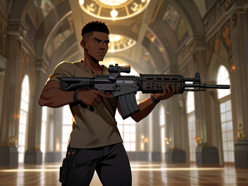 Под изумленными и ошарашенными взглядами японских школьников на свет появился автомат Калашникова. За ним последовала разгрузка, которую африканец поспешил на себя надеть. В её кармашках лежали три гранаты и множество магазинов к автомату, который парень повесил себе на плечо. Затем он вернул на спину рюкзак и решительно зашагал прочь из зала призыва.