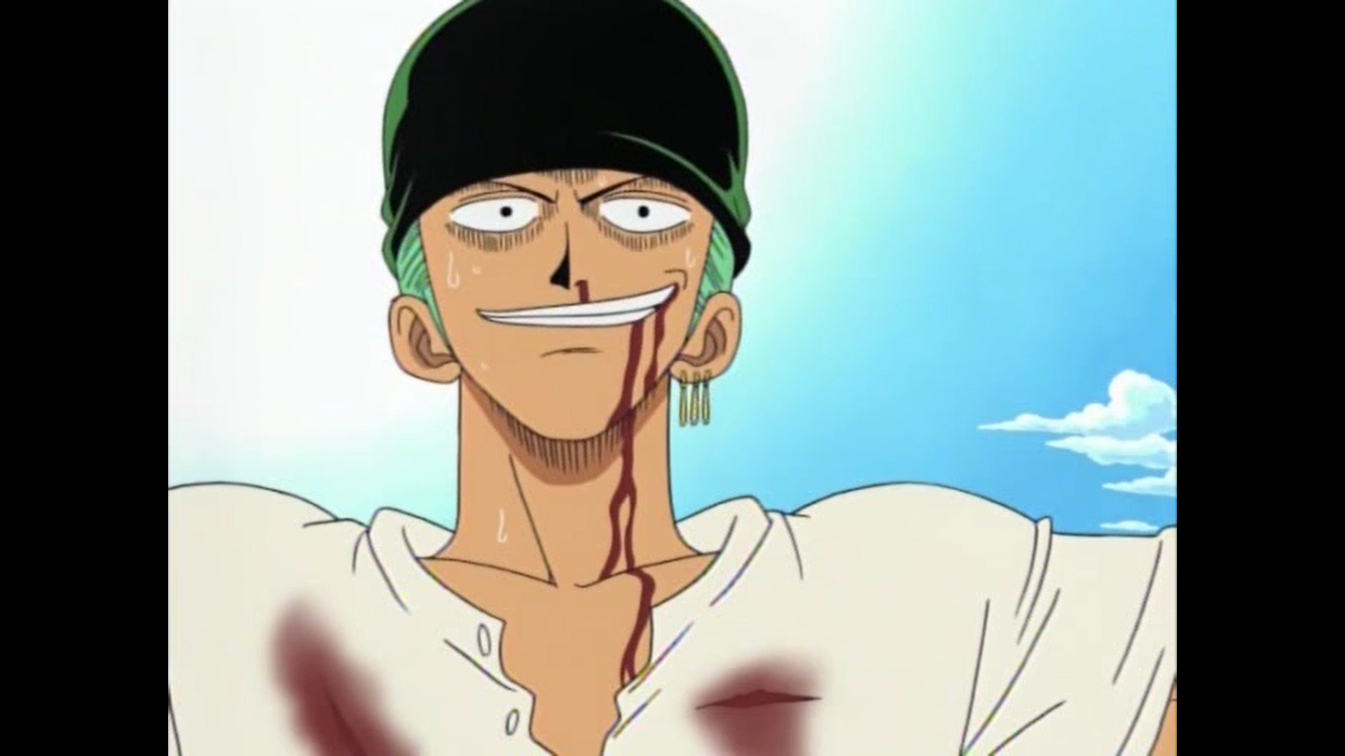 Тем не менее, не смотря на боль и кровоточащую рану, Зоро даже не дрогнул.