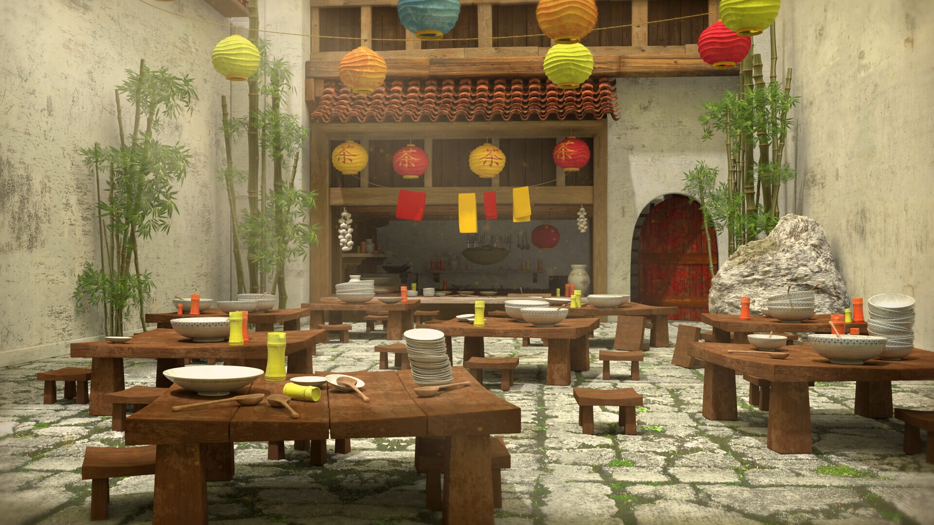 Проходя между каменных и местами покрытых трещинами строений, Раин наткнулся на знаменитую лапшичную, что держал отец По. Не сумев обуздать своё любопытство, он заглянул внутрь дворика, что был обставлен деревянными столами, за которыми обедали свиньи, утки и зайцы, что уплетали за обе щёки драгоценные обучающие пельмешки, более известные в мире Раина, как баоцзы.