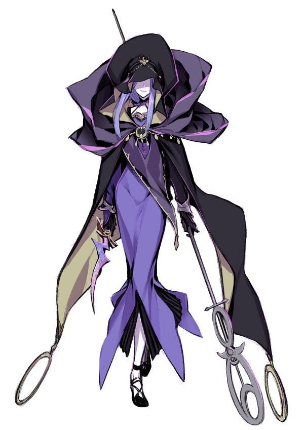 Одетая в пурпурно-синюю мантию с капюшоном и золотой вышивкой, которая была столь же замысловатой, сколь и жуткой, она полностью воплощала представление масс о ведьме.