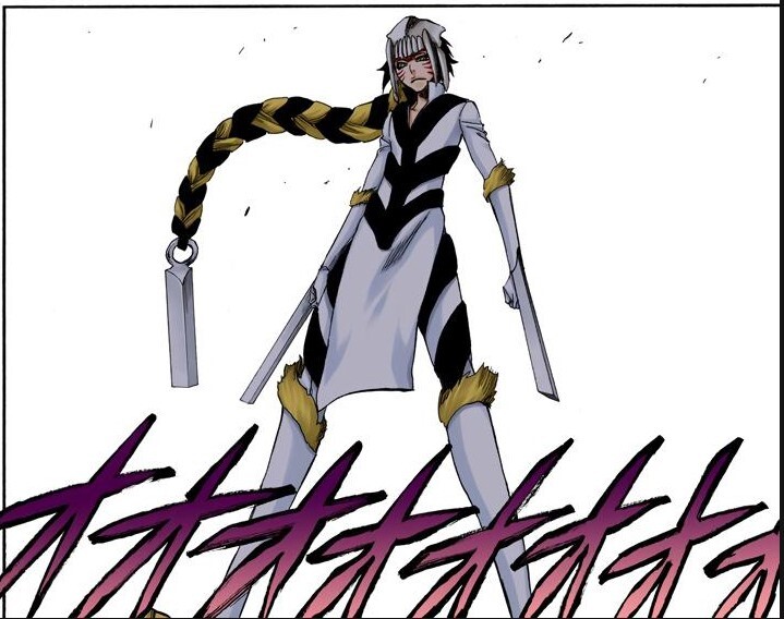 После этого клинок объяла вспышка красноватой реацу, быстро распространившаяся на всю фигуру арранкара. Сам Занпакто буквально испарился, а маска и тело арранкара начали трансформироваться… не так уж сильно, на самом деле.