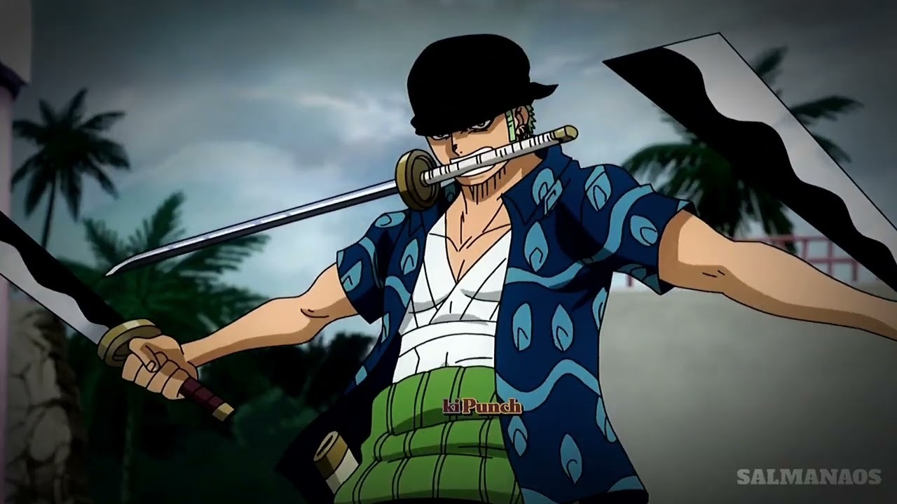 Зоро в своей манере кровожадно ухмыльнулся, положив руку на свой меч.