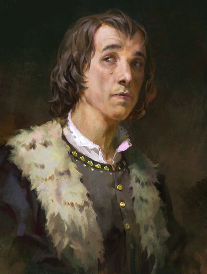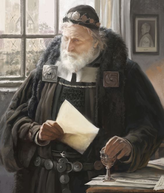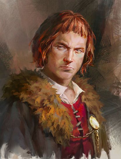 Интересно, что за персонаж так стремится встретиться со мной? Явно не убийца и ни какой-нибудь лорд под прикрытием. Ладно, посмотрим. Стол очистили от трапезы, оставив его пустым, а в помещении сразу стало тесновато из-за присутствия четырёх вооруженных мордоворотов. Итан также остался. В помещение ввели мужчину средних лет и такого же среднего телосложения. Волосы и борода цвета каштана, но с проблесками седины. Одет он как горожанин средней руки или обедневший дворянин — тёмный колет, брюки и хоть и потёртые, но целые и добротные сапоги, на голове шаперон без каких-либо украшений. Но гостя я узнал. Тихо светящаяся в этих ярко-голубых глазах стальная воля не оставляла никаких сомнений