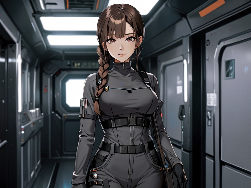 Вскоре в помещение решительными шагами ворвалась ещё одна красавица с косой каштановых волос и в тёмно-сером обтягивающем комбинезоне.