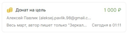 Вот, я прикладываю время, когда пришёл донат, чтобы не прослыть мухлёжником. По моему часовому поясу, в мои 01:00 в МСК = 00:00