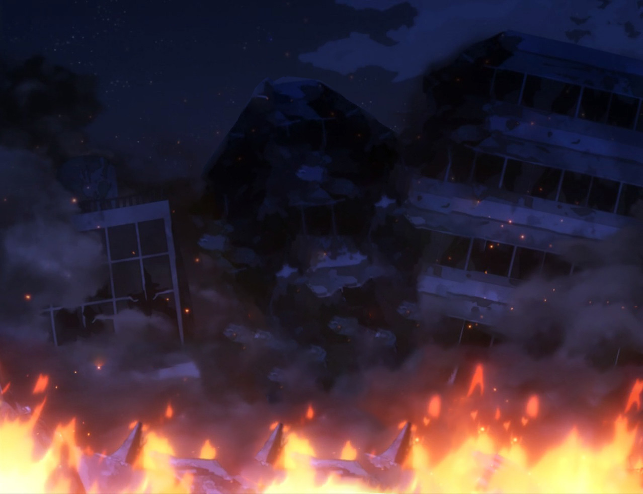 Оглядев пылающие улицы, Дубль-Изуку медленно осмотрел округу в поисках героев, специализировавшихся на спасении и тушении огня. Он стоял на одном месте без действия вот уже пятнадцать минут, поры бы кому-нибудь и объявится. Однако, никто так и не торопился показаться ему на глаза, так что единственным живым существом посреди руин, возможно был только он один.