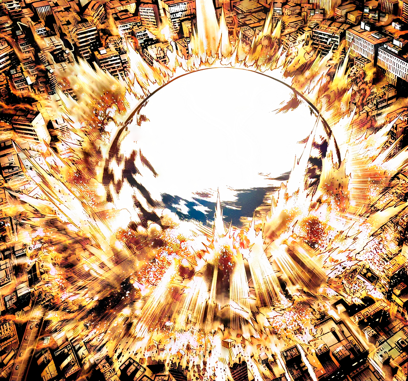 Сразу же после этих слов, словно бы само время застыло на несуществующий миг и уже в следующее мгновение, Окаяму поражает новая вспышка болезненно-яркого, белого сияния! Лишь только потом, звук от ужасающего взрыва добрался до живых и вместе с тем, разрушил то, до чего не добралась первая сила взрыва!