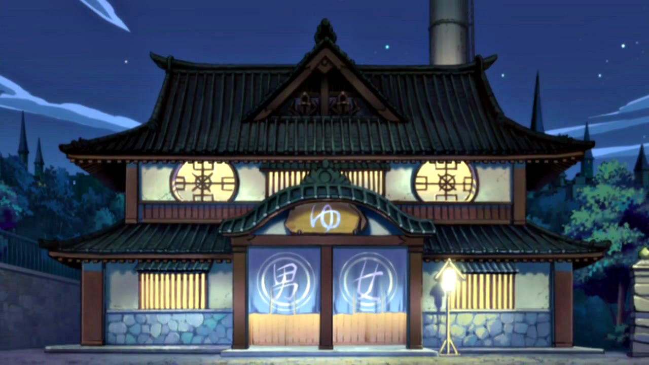 — О-Онсэн, сразу же ч-через душевые в т-той ст-стороне, при-приятного отд-дыха…