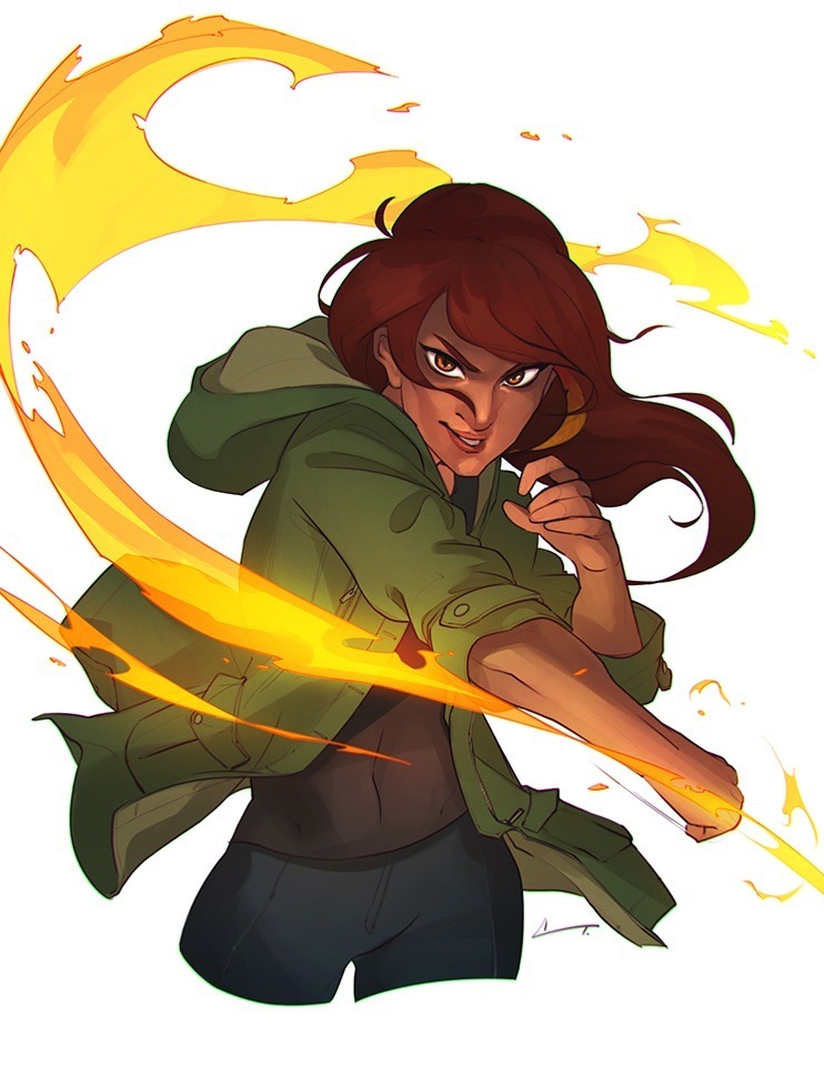 Поняв, что «чудовище» не собирается с ними ничего делать, девушка, обладающая слабой причудой пламени, немедленно бросилась на выручку к пострадавшему носителю футуристичных доспехов. Склонившись над ним, линчеватель заговорила ободряющим тоном: