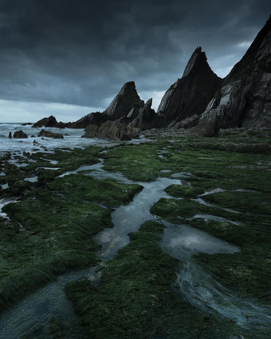 Они находились в месте, которое можно было бы описать как замкнутую с трех сторон бухту: непосредственно за спиной Поттера находилась темная гора, на которой не было ни единого уступа, а по обеим сторонам от нее получившийся залив был окружен скалами, каждая встреча волн с которыми приводила к огромным всплескам. Тысячи брызг обрушивались на плоские камни, которыми все побережье было покрыто, словно брусчаткой, пока новая волна уже набирала скорость.