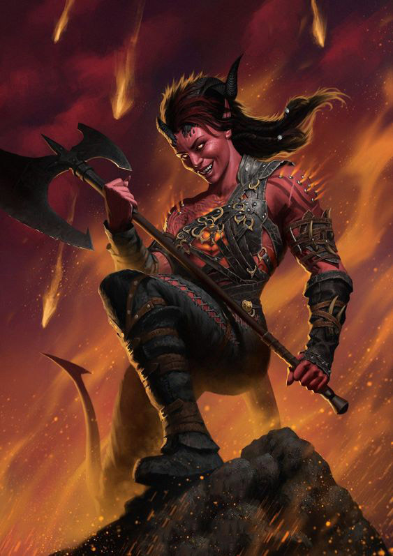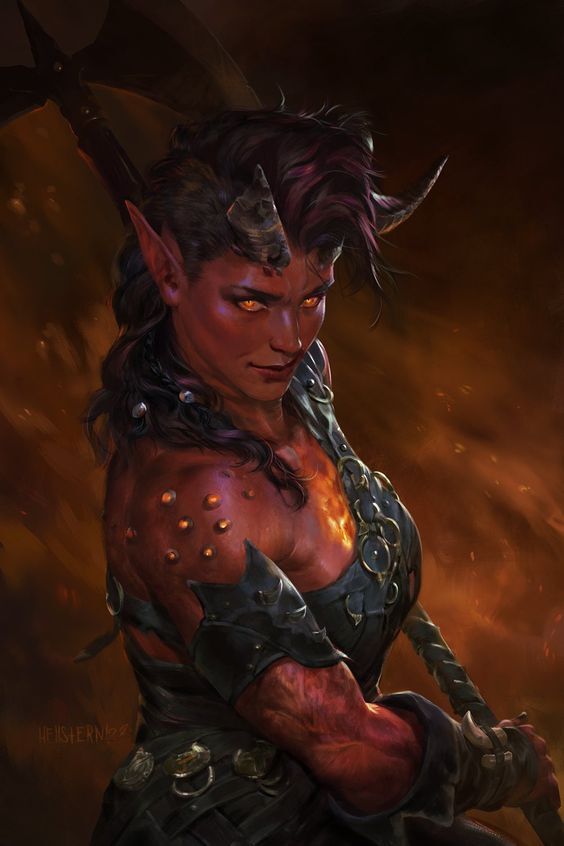 Как в этот момент рядом с нами открылись ещё одни телепортационные врата, из которых вышел другой отряд слуг во главе с Риэль. Как и остальных слуг, её ядро и оболочка были усилены кузницей бессмертия и душами даэдра, дав ей мощь, соизмеримую с сотым уровнем. Как и в прошлый раз, её внешность значительно изменилась из-за влияния душ даэдра. Теперь строение её тела больше напоминает человеческое и эльфийское, а вот внешне она стала больше походить на дремор. Темноволосая, длинноухая и краснокожая демоница одного со мной роста, с прорезающимися из головы рогами. Фактически она теперь очень похожа на меня, значит, её можно называть дьяволицей… о чем явно намекает наличие у неё хвоста.