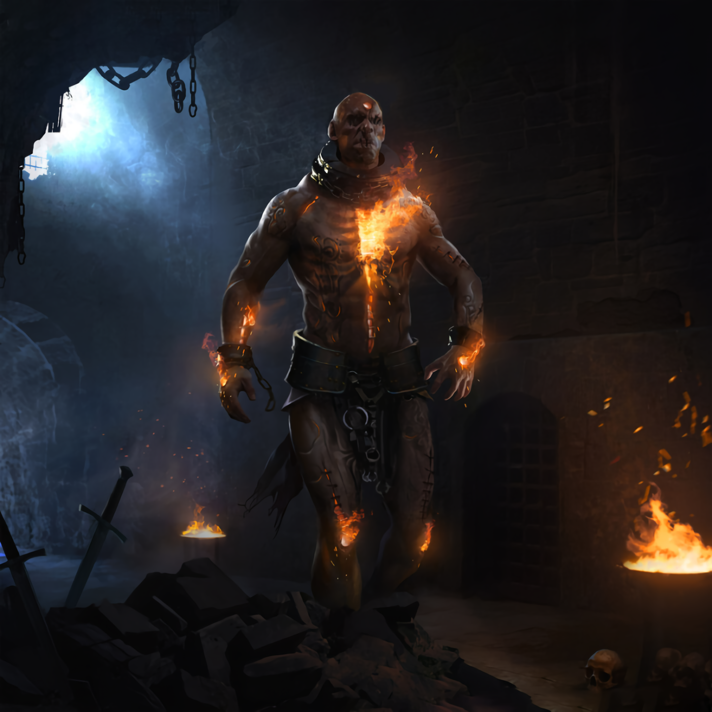 Более сильными были атронахи плоти, выглядящие как сшитый конгломерат кожи и мышц, украшенный мистическими символами и одетый в железный ошейник. Они стоят на границе между нежитью и даэдра, своего рода нежить из частей тел с душой даэдра. И вот с поглощения их душ я получил немало SP.