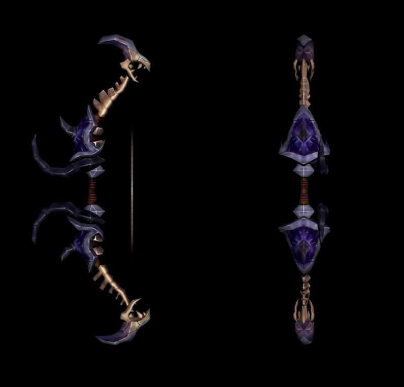 Для создания этого лука я взял эбонит, этерий и кости дракона, а также использовал души вампиров и личей, включая отловленных айлейдских колдунов и душу Азры Властителя Ночи, которого я нашел пару лет назад заключенным в кристалле. Как и у моих демонов, у лука есть собственное ядро, поэтому оно способно поглощать души и передавать их силу владельцу лука.