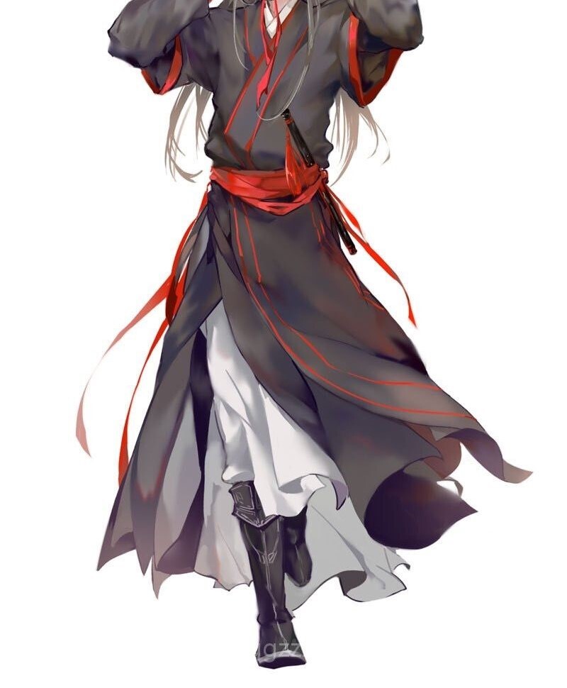 И именно на нём сидел молодой парень со слегка длинными до шеи светлыми волосами, что были сравнимы с цветом золота в данный момент. Его одежда напоминала одежду членов почётных семей или же дворян древнего Китая. Чёрные кожаные высокие ботинки, штаны белого оттенка, чёрная рубашка с красными лентами на рукавах возле запястий, чёрный халат с длинным подолом и красными краями и воротами, обвязанный красным тканевым поясом.