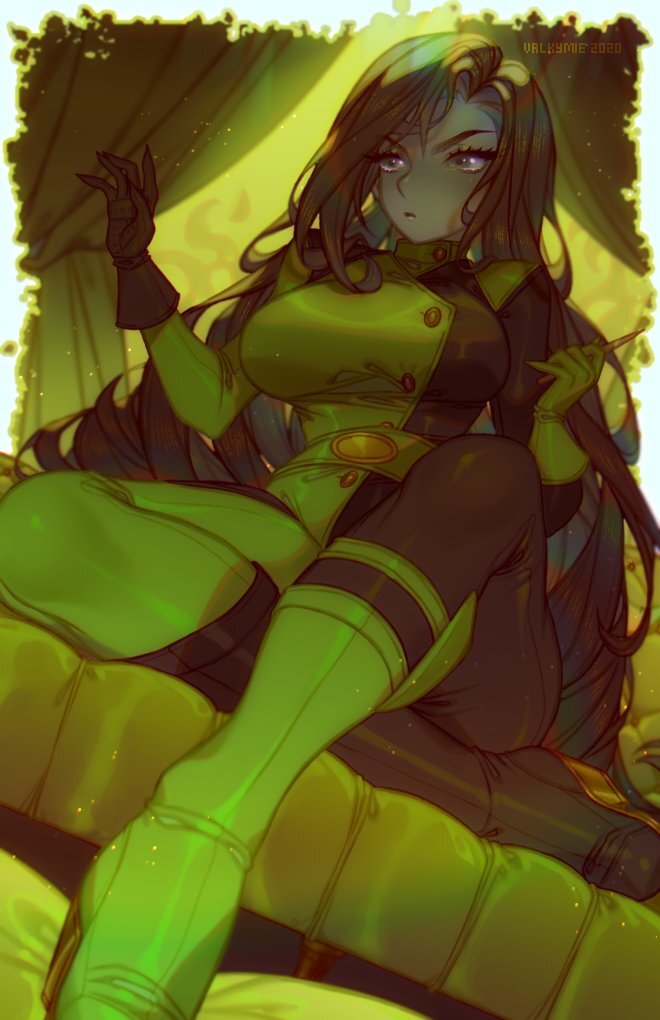И как в ответ, в окно влетела фигура, что изящно приземлилась на моём этаже. В свете луны выглядывал до боли знакомый чёрно-зелёный наряд. У меня глаз задёргался. Как она не вовремя! Даже ради лишнего подтверждения воспользовался на гостье Анализом.