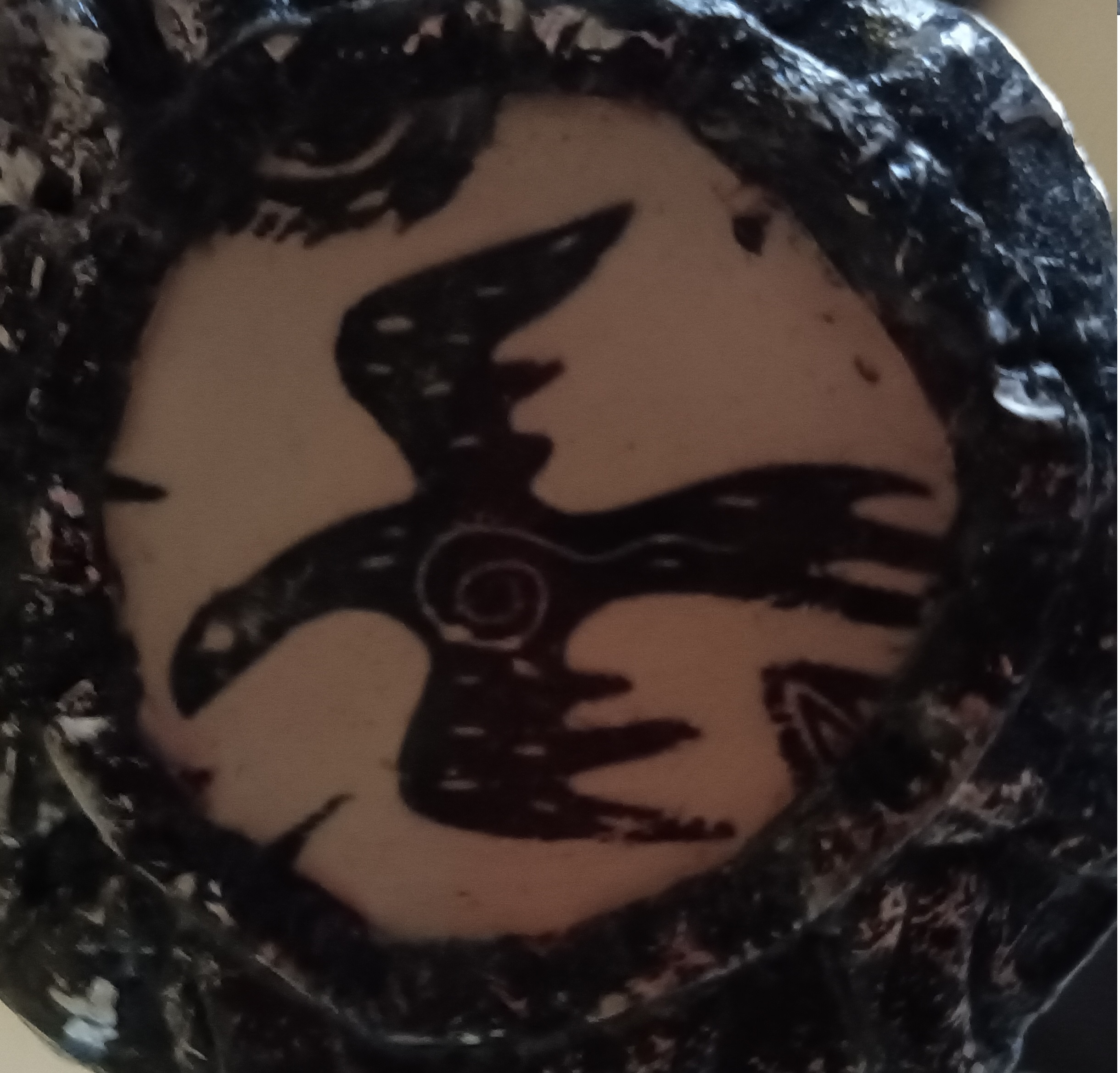 Все указывает на то, что это ворон, но не ацтекский, у них другая геометрия, как мне кажется, но тоже есть такой спиральный знак. Можно покопаться в этом направлении.