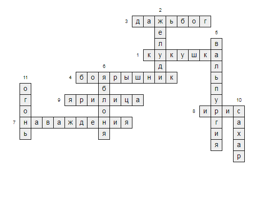 3. Имя бога, который по одной версии был отцом богини Живы, а по другой её супругом.