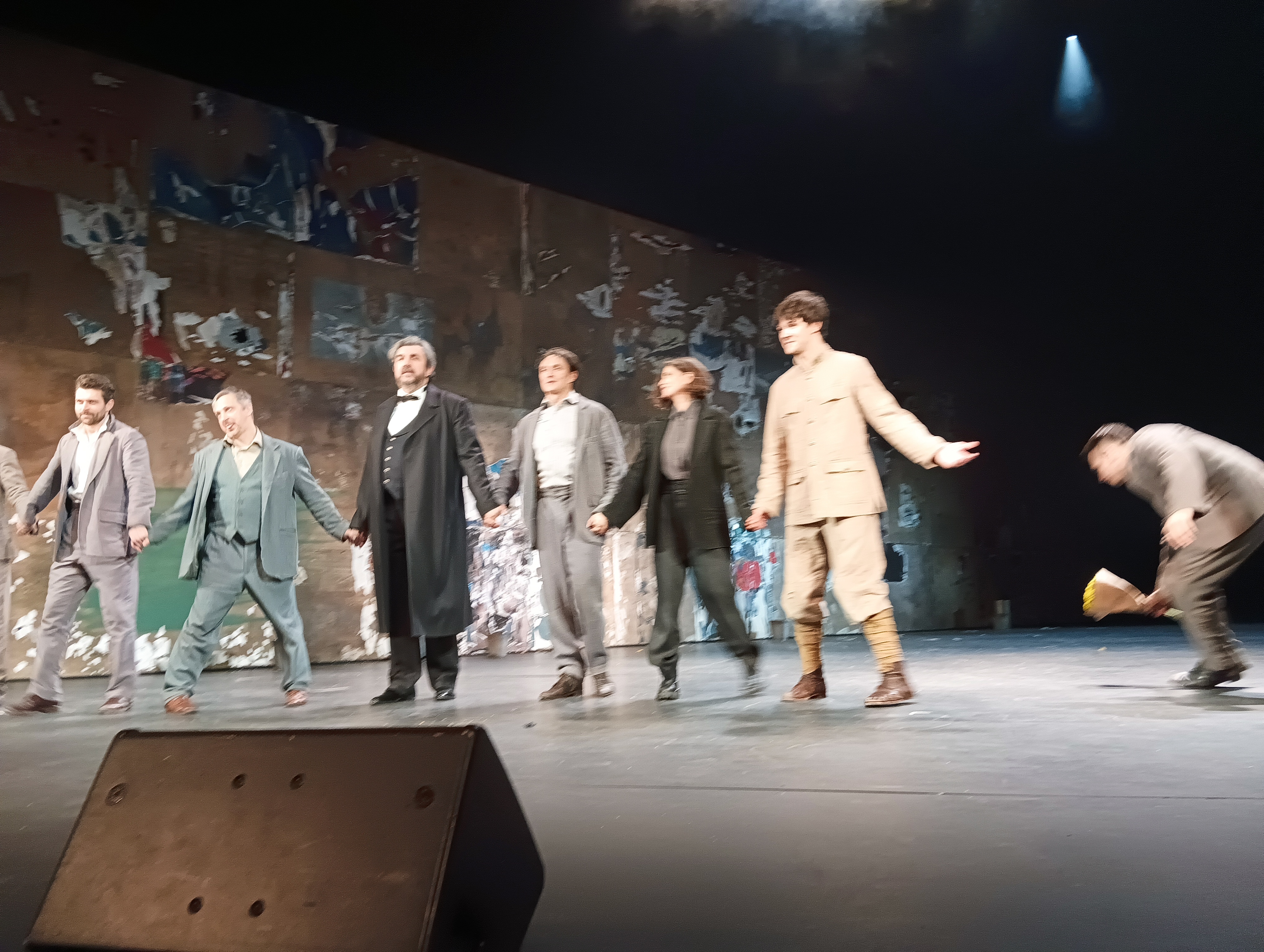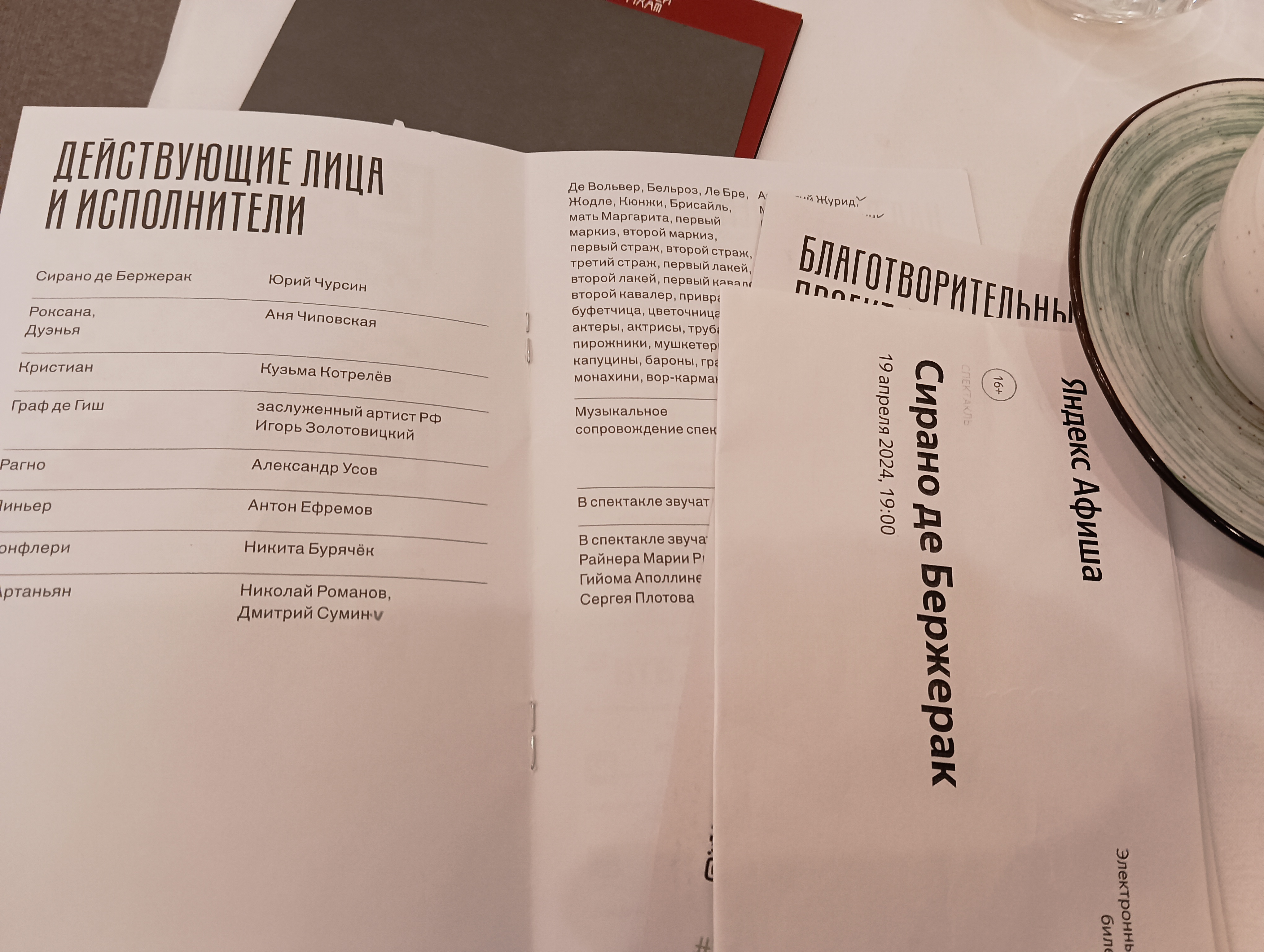 PS Сидя на первом ряду и периодически оказываясь в метре от артистов, присаживающихся на край рампы, можно было только смотреть и восхищаться. О фото и видео речи не шло. Взяла в сети то, что на 100% совпало с памятью. Тот монолог Сирано, что на видео я видела с того расстояния, что он снят, только другой ракурс (Юрий 😍🥰😘) Поклоны — мои фото 🙂
